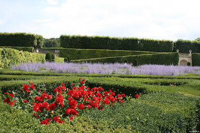De camperplaats is op de parkeerplaats bij het Chateau achter het Info-Tourist kantoortje ,de camperplaatsen zijn een stoffige bedoeling daarom kun je beter achteraan gaan staan ,er is geen stroom maar wel een toiletgroep die niet al te zuiver was en veel vuilnisbakken meer faciliteiten zijn er niet bij. We zijn eerst het kasteel gaan bewonderen en de mooie tuinen die er perfect bijliggen , wat opvalt zijn de lage planten met appels eraan die zo`n 30 cm hoog zijn en natuurlijk de vele buxushaagjes en de vele kruiden en groentetuinen .